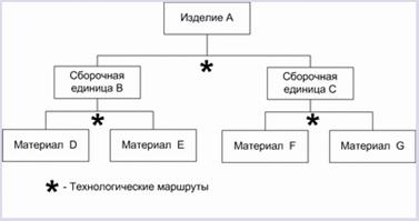 Технологический маршрут тАУ информация, описывающая способ производства данной номенклатурной позиции. Включает операции, которые необходимо выполнить, их последовательность, различные используемые рабочие центры, а также нормы времени для подготовки и обработки. В некоторых компаниях технологические маршруты также содержат информацию об инструментальном обеспечении, требования к уровню квалификации рабочих, операциях контроля качества, требования к тестированию и др. Для каждой изготавливаемой номенклатурной позиции должен быть описан хотя бы один технологический маршрут ее производства. Если рассматривать многоуровневую спецификацию продукта, то технологических маршрутов, применяемых при изготовлении готовой продукции, для которой описана данная спецификация, должно быть как минимум столько, сколько изготавливаемых номенклатурных позиций имеется в списке компонентов этого готового продукта плюс как минимум один технологический маршрут для этой готовой продукции.