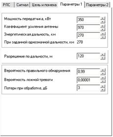 Рис. 3 - Параметры системы (Цель и помеха, Параметры 1)