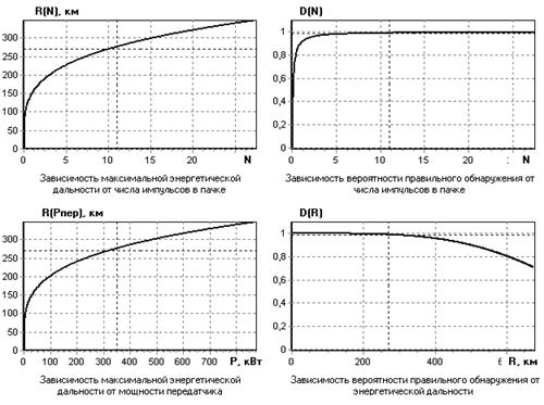 Рис. 6 - Графики зависимостей основных параметров РЛС