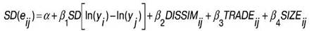 SD ln(yi)-ln(yj) - стандартне вiдхилення рiзницi логарифмiв показника реального випуску краiн i та j;
