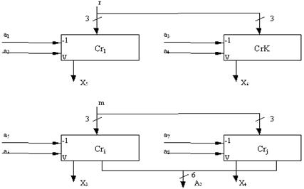 Количество разрядов регистров m, r и счётчиков k, l и i, j равно соответственно