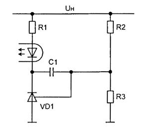 Получение сигнала обратной связи стабилитрона осуществляется на рис. 13 следующим образом. Предположим, что резисторы R2=R3 являются делителем напряжения Uн, через оптронный светодиод в номинальном режиме будет протекать совершенно конкретный ток, определяемый падением напряжения на светодиоде и токоограничивающем резисторе R1. В номинальном режиме напряжение питания цепи светодиода составляет 2,5 В. Изменение напряжения на нагрузке в 2 раза приведет к тому, что напряжение питания светодиодной цепи возрастает до 5 вольт, увеличится ток через светодиод, транзистор оптопары приоткроется и схема управления получит информацию об изменении напряжения нагрузки.