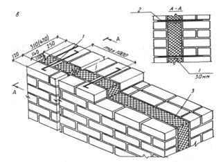 Минераловатные плиты укладывать с воздушной прослойкой толщиной 20 мм., создаваемой с помощью распорной шайбы. Стены с плитным утеплителем применяются как основной вариант облегченной кладки.