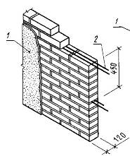 Глубина заделки арматуры в облицовочный слой кладки - не менее 90 мм., при этой толщина защитного слоя раствора из условий пожаробезопасности должна составлять не менее 20 мм.