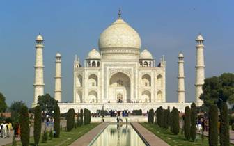 Нельзя не отметить пожалуй одно из самых знаменитейших мест Индии - Тадж-Махал, который стоит среди кипарисовых парков на берегу Ямуны. Этот мавзолей был сооружен при шахе Джахане в память его горячо любимой жене. В 1629 году, родив на свет 14-го ребенка, супруга индийского Могола умерла. Ей было 36 лет, из которых 17 она была замужем. Султан Шах-Джахан потерял не только любимую жену, но и мудрую политическую советницу. Есть сведения, что он два года носил по ней траур и дал клятву построить надгробный памятник, достойный памяти жены, совершенно необычайный, с которым ничто в мире не сможет сравниться. Арджуманд Бану, известная также, как Мумтаз-Махал ("Избранная дворцом"), покоится именно в такой необычайной гробнице, названной ее именем в сокращении: Тадж-Махал. Строительство велось в несколько этапов, с 1631 по1653 год. Над сооружением здания работало более 20 000 человек, набранных не только по всей Индии, но даже и в Центральной Азии. Главным архитектором был Иса Кхан, прибывший из иранского города Шираза, а замечательные европейские мастера богато украсили фасад здания. Усыпальница выстроена из мрамора, но здание вовсе не выдержано полностью в белом цвете, как это пытаются представить многие фотографии. Поверхность его инкрустирована тысячами драгоценных и полудрагоценных камней, а для каллиграфически выполненных орнаментов использовался черный мрамор. Когда-то двери в Тадж-Махал были из серебра. Внутри находился парапет из золота, а усыпанная жемчугом ткань лежала на гробнице принцессы, установленной на самом месте ее сожжения. Воры похитили эти драгоценные предметы и неоднократно пытались выбить драгоценные камни инкрустации. Но, несмотря на все это, мавзолей и сегодня у каждого посетителя вызывает потрясение.