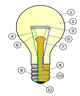 Конструкция современной лампы. На схеме: 1 тАФ колба; 2 тАФ полость колбы (вакуумированная или наполненная газом); 3 тАФ тело накала; 4, 5 тАФ электроды (токовые вводы); 6 тАФ крючки-держатели тела накала; 7 тАФ ножка лампы; 8 тАФ внешнее звено токоввода, предохранитель; 9 тАФ корпус цоколя; 10 тАФ изолятор цоколя (стекло); 11 тАФ контакт донышка цоколя.