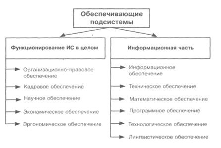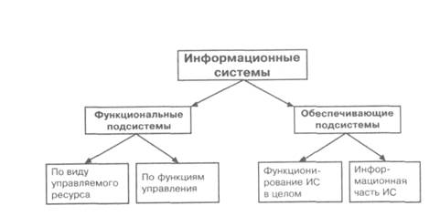 В рамках информационной системы выделяют различные по своему назначению подсистемы, которые можно рассматривать как самостоятельные системы. С точки зрения роли подсистем в решении задач управления их разделяют на функциональные и обеспечивающие (рис. 2).
