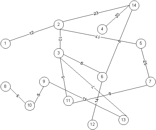 Придумать связный взвешенный граф из восьми вершин и не менее чем 14 ребер (нумерация ребер тАУ слева направо, веса от 1 до 20). Для этого графа построить минимально островное дерево с помощью алгоритма Прима, и найти расстояние между вершинами 1 и 8 с помощью алгоритма Дейкстры. Реализовать алгоритм на любом языке программирования.