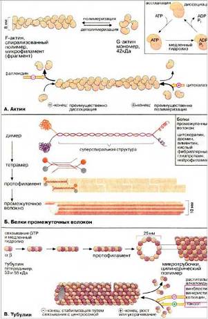 фибрилл в составе цитоскелета являются