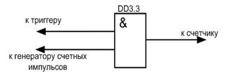 Схема временного селектора состоит из логического элемента ВлИВ». При подаче на вход импульса с триггера сигнала ВлединицыВ», на выходе будет последовательность импульсов, идущих с ГСИ. А если с триггера пойдет сигнал логическогоВлнуляВ», то на выходе всегда будет ВлнольВ».