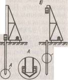 Данный тип свай применяют для уплотнения слабых грунтов. В этом случае используют специальные приспособления в виде стальной обсадной трубы с коническим четырех лопастным раскрывающимся наконечником. Трубу заполняют песком (грунтом) и с помощью вибропогружателя погружают на проектную глубину (рис. 1.16). При движении трубы кольцо, открывающее лепестки наконечника, спадает и остается в грунте, а песок (сухой грунт) заполняет скважину. Песок уплотняют за счет вибрации от погружателя или трамбовками с помощью легкого копра. Таким способом выполняют набивку скважин на глубину до 7 м.