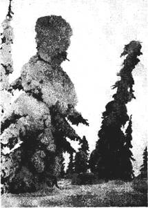 За последние годы наблюдается усиление циклонической деятельности, и поэтому снежные метели становятся все более сильными, а снегопады все более обильными, обостряющими экологическую обстановку в населенных пунктах и на транспорте. Так, например, в январе 2001 г. на Сахалине метели и мощные снегозаносы на много дней парализовали всю хозяйственную деятельность, а в Москве 3тАФ4 января того же года выпала месячная норма осадков и на расчистку города от снегозаносов пришлось задействовать 7000 единиц снегоуборочной техники и 4000 дворников, не говоря уже о пробках на дорогах и трудностях для пешеходов. В целом по России на борьбу со снегозаносами в городах, на железнодорожных и автомобильных путях сообщения ежегодно расходуются миллиардные средства. В горах, где снега выпадает особенно много, снегозаносы и снежные лавины не только усложняют условия жизни населения, но нередко приводят к катастрофам с человеческими жертвами. Обильные снегопады и снегозаносы сильно усложняют и удорожают эксплуатацию аэродромов, стадионов и других открытых сооружений. В районах с мощным снежным покровом крыши зданий и других сооружений испытывают дополнительную нагрузку, что может привести к их разрушению и что следует учитывать при их проектировании и строительстве. Большую нагрузку испытывает кустарниковая и древесная растительность. В лесах, особенно хвойных, снежная навись на ветвях деревьев (ВлкухтаВ» [3]) нередко достигает такой тяжести, что не только ветви, но и целые крупные деревья ломаются, как спички, а молодой подрост сгибается в дугу (рис. 2).