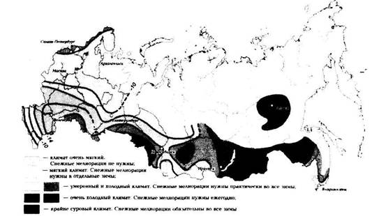 Рисунок 3 - Подснежный климат и районы снежных мелиорации
