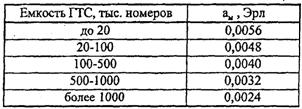 - удельная междугородная интенсивность нагрузки, определяемая по таблице в зависимости от числа жителей в городе: