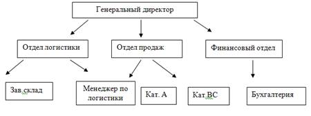 Генеральному директору подчиняются менеджер по логистике, менеджер по продажам, главный бухгалтер
