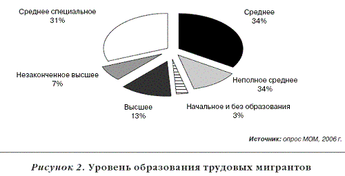 По данным обследования 2006 года, около половины опрошенных мигрантов не имели стабильной занятости на родине (были безработными, имели разовую или временную работу).