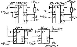 Рис. 1.4.4,(а, б) тАУ Схемы одновибраторов (а тАУ К555ТМ2 с элементом DD2.1, б тАУ К555ТМ2 с элементом DD2.2)