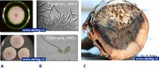 Рисунок 1.3 − Плесневые и деревоокрашивающие грибы под
