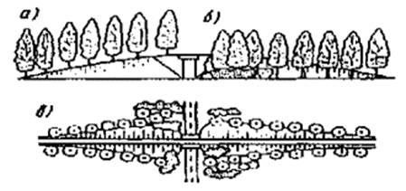 Рис. 5. Озеленение выемок в открытой местности с устройством кулис озеленения при входе в выемку