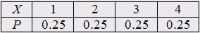 Пусть измерение случайной величины Х представляет собой бросание правильной однородной треугольной пирамиды, на гранях которой написаны числа 1, 2, 3, 4. Дискретная, случайная величина Х имеет простое равномерное распределение: