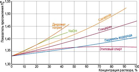 Зависимость показателя преломления водных растворов некоторых веществ от концентрации: