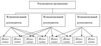 Функциональная организационная структура основана на создании подразделений для выполнения определённых функций на всех уровнях управления. К таким функциям относят: исследования, производство, сбыт, маркетинг и т.д. Здесь с помощью директивного руководства могут быть соединены иерархически нижние звенья управления с различными более высокими звеньями управления. Передача поручений, указаний и сообщений осуществляется в зависимости от вида поставленной задачи.