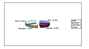 Как видно из рисунка 5, лидирующее положение на рынке предоставления услуги в 2007 году занимает конкурирующая организация. Но грамотно проведенная маркетинговая программа и значительное усовершенствование технической возможности в 2008г. позволило занять лидирующее положение. Это видно на рисунке 6.