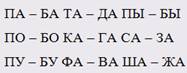 4.1. Процедура. Воспроизведение слоговых сочетаний с согласными звуками, различающимися по звонкости / глухости, сначала по два слога: