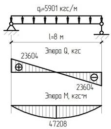 Определяем внутренние усилия на расстоянии 8 м от опоры