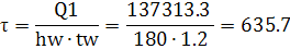Значения касательных напряжений в сечении изгибаемого элемента должны удовлетворять условию