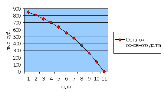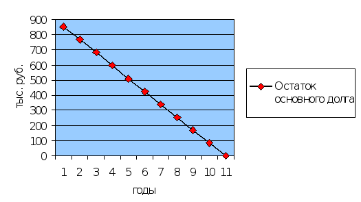 Рис. 2. Динамика остатка основного долга по аннуитетному ипотечному кредиту