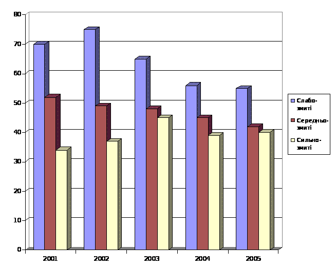 За результатами таблиці 5 можемо прослідкувати зростання площі еродованих земель на протязі 2001 – 2002 років, але за останні 3 роки (2003 – 2005 роки) простежується зменшення площ еродованості ґрунтів.