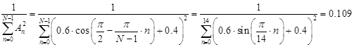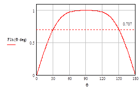 Ширина диаграммы направленности по уровню 0.5 мощности ( По диаграмме направленности на рис.15 оценю уровень боковых лепестков. Высота наибольшего из боковых лепестков – 0.09, при этом