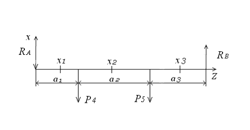 Рисунок 9 - Усилия, действующие в плоскости XOZ Определим реакции в опорах из условий равновесия: