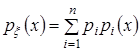 Рисунок 6 - Апроксимація складної щільності ймовірності за допомогою гаусових розподілів Таким чином, алгоритм моделювання ВВ методом суперпозиції містить у собі такі етапи: вибір вигляду найпростішої щільності розподілу, за допомогою якої апроксимується задана щільність ймовірності; моделюється реалізація ВВ, яка приймає дискретні значення для отриманого значення i