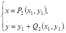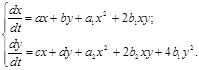 Відповідно до формули (1.4), де L (x,y) = m1x+n1y+p1,m1, n1, p1 - постійні для системи (1.1), маємо: (2a1-m1) (2= 0 (1.151) (4b1-n1) (+2a1= 0 (1.152) m1= 4b2 (1.153) n1=8b1 (1.154) (2a-p1) (+ (a1-m1) (+a2 (=0 (1.161) 2b (+ (2b1-n1) (+ (2b2-m1) (+2c= 0 (1.162) (4b1-n1) (+2d-p1= 0 (1.163) (a-p1) (+c (+m1 (= 0 (1.171) b (+ (d-p1) (-n1 (= 0 (1.172) p1 (= 0 (1.173) Припустимо, що крива не проходить через початок координат, тобто ( (0.Нехай ( (0, тоді з рівностей (1.151), (1.153), (1.154) і (1.173) одержуємо, що m1=4b2, n1=8b1, a1=2b2, p1=0 (1.18) А зі співвідношень (1.161), (1.163) і (1.171) знайдемо вираження коефіцієнтів кривій (1.13) через коефіцієнти системи (1.1) у наступному виді: