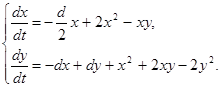 Знайдемо стани рівноваги системи (2.1). Дорівнявши праві частини системи нулю й виключивши змінну y, одержимо наступне рівняння для визначення абсцис станів рівноваги: