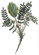 Астрагал пушистоцветный (лат. Astragalus pubiflorus ) В качестве лекарственного сырья применяется надземная часть астрагала, собраннае во время цветения и камедь - сок, выступающий из естественных трещин и надрезов ствола кустарника астрагала пушистоцветного, мелкоголовчатого и некоторых других астрагалов. В траве астрагала пушистоцветного содержатся в относительно большом количестве железо, кальций, алюминий, фосфор, магний и натрий, в умеренном количестве - барий, кремний, стронций, молибден, ванадий, марганец. В камеди обнаружены арабин, крахмал, сахара, слизистое “вещество”, сильно набухающее, но мало растворимое в воде, красящие вещества. В эксперименте внутривенное введение настоя из травы астрагала пушистоцветного (1: 10) вызывает снижение артериального давления, уменьшение числа и увеличение силы сердечных сокращений и расширение сосудов сердца, почек и кишечника. В медицинской практике настой астрагала пушистоцветного с успехом применяется при сосудистых заболеваниях почек. В результате лечения отмечается увеличение скорости кровотока, нормализуется артериальное давление, улучшение наполнения пульса, понижение венозного давления, увеличение диуреза, сопровождающееся уменьшением отеков. Положительное действие астрагала наблюдается и при лечении острого и хронического нефритов. По имеющимся клиническим наблюдениям применение настоя астрагала наиболее эффективно при хронической недостаточности кровообращения I и II стадии и при лечении острого нефрита. Назначают астрагал в виде настоя внутрь по 1-2 ст. л.3-4 раза в день или в виде клизм по 50-75 мл 1-2 в день. Пушистоцветный астрагал рекомендуется в народной медицине в виде отвара из корня как мочегонное средство при болезнях почек и отеках различного происхождения.