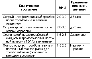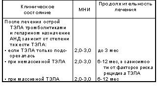 Примечание. * – установлено первичное гиперкоагуляционное состояние (дефицит протеина C, протеина S, антитромбина III, плазминогена, повышенная концентрация фактора VIII) или найдены антифосфолипидные антитела При наличии противопоказаний для АНД или по другим причинам не следует назначать АНД, возможно использование стандартного или низкомолекулярных гепаринов (табл. 4). Таблица 4. Назначение АНД при подозреии или развитии ТЭЛА