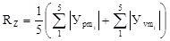 Рис. 3. Схема вимірювання нерівностей Середній крок нерівностей профілю Sm – це середнє значення кроку нерівностей профілю по середній лінії в межах базової довжини. Кроком місцевих виступів називається довжина відрізка середньої лінії між проекціями на неї двох найвищих точок сусідніх місцевих виступів профілю. Середнім кроком Si місцевих виступів профілю називається середнє значення кроку місцевих виступів в межах базової довжини. Для оцінки шорсткості поверхні в машинобудуванні одержав велике поширення висотний критерії Rz . Висота нерівностей профілю по десяти точках Rz представляє собою суму середніх абсолютних значень висот п’яти найбільших виступів профілю і глибин п’яти найбільших западин профілю в межах базової довжини, тобто (рис. 3) [2]: