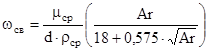 )=0,59 м/с. Верхний предел допустимой скорости воздуха в псевдоожиженном слое определяется скоростью свободного витания (уноса) наиболее мелких частиц. Скорость свободного витания (уноса) определена по формуле: