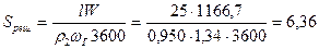 Рабочая скорость газа, отнесенная к полному сечению аппарата, м/c: