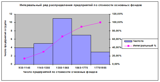 Рис.2 Интегральный ряд распределения предприятий по стоимости основных фондов |