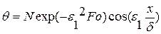 т.к Fo>0,2, то можно ограничится первым членом ряда, тогда