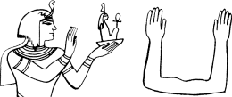 Слева - фараон со статуэткой сидящей богини Маат на ладони Справа - двойник «Ка» - пара рук, воздетых в знак покровительства