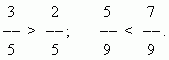 Сравнение дробей. Из двух дробей с одинаковыми числителями та больше, знаменатель которой меньше: