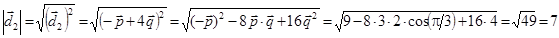 Длины этих векторов, т.е. длины ребер и , таковы: ,
