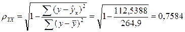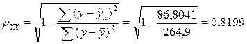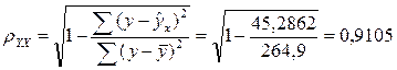 Связь между показателем y и фактором x можно считать достаточно тесной. Коэффициент детерминации: