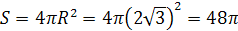 , площадь этой сферы равна 36 2.