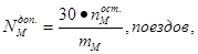 Число маршрутов, полученное при расчётах, округляется в меньшую сторону до целого числа. Из остатка вагонов, неохваченных ежедневными отправительскими маршрутами, необходимо разработать вариант организации маршрутов с мест погрузки на месяц с учётом сгущения погрузки по календарному плану. Число таких маршрутов определяется по формуле: